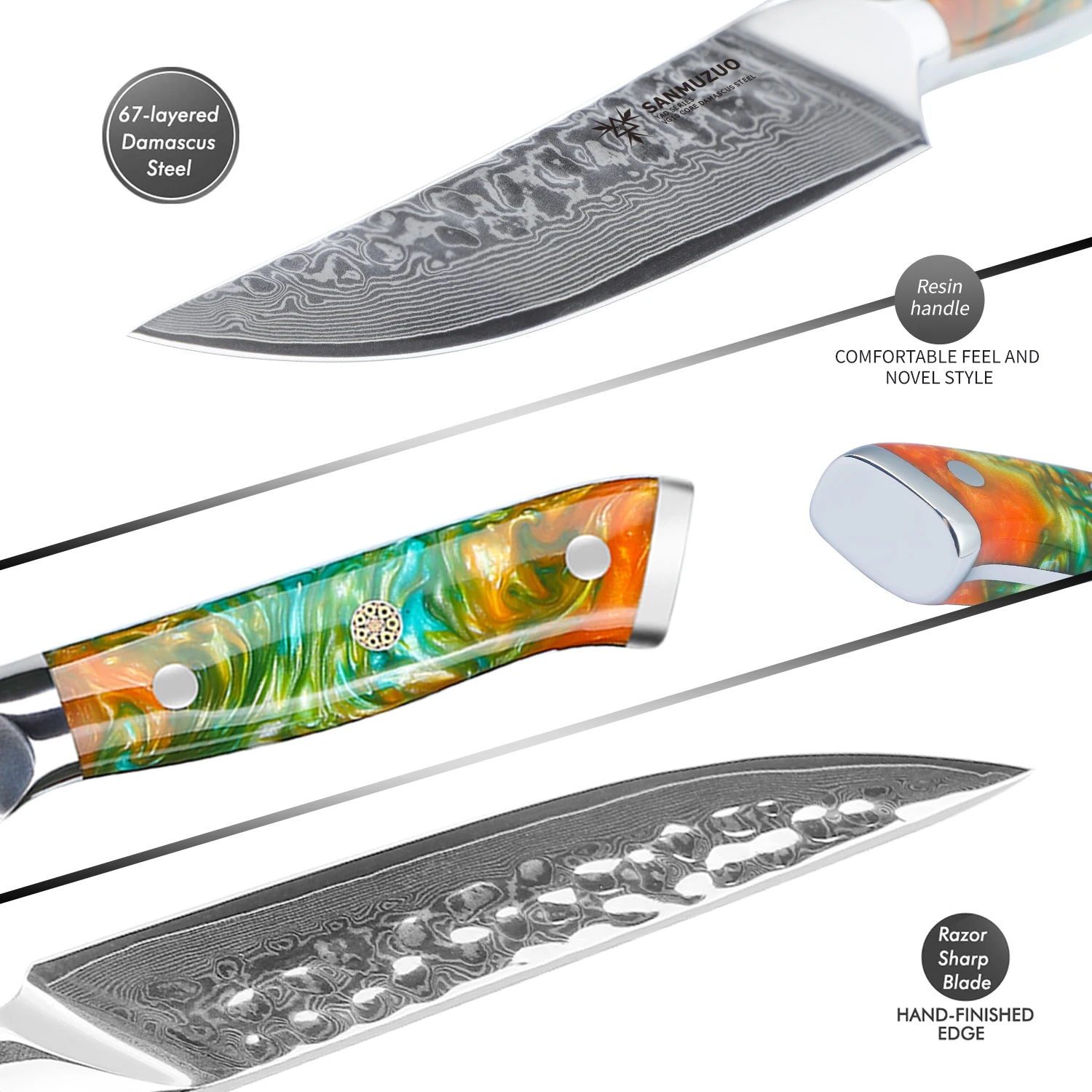 Home HOT SALE- LIMITED TIME 5″ SANMUZUO 4-Piece Steak Knife Set – YAO Series – Damascus Steel Blades – Resin Handle