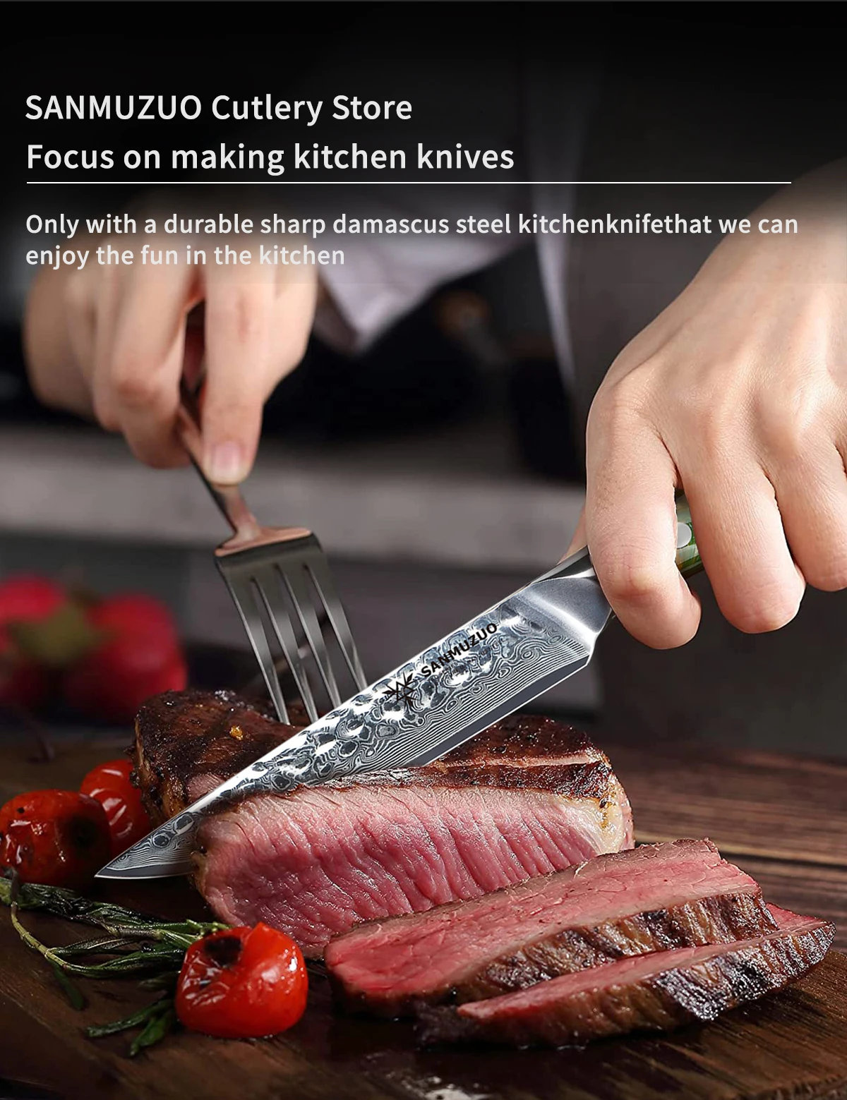 Be the first to review “5″ SANMUZUO 4-Piece Steak Knife Set – YAO Series – Damascus Steel Blades – Resin Handle” Cancel reply