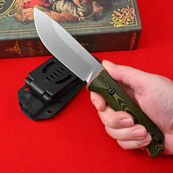 Bushcraft D2 Steel Fixed Blade Knife with G10 Handle, Sheath 5-7 Day US Shipping