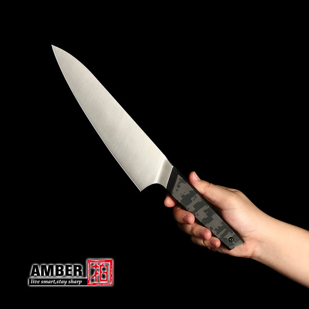 Amber 2pcs Japanese Kitchen Knife Set- Sandvik 14C28N Steel Chef and Kiritsuke Knife with Camouflage G10 Handle