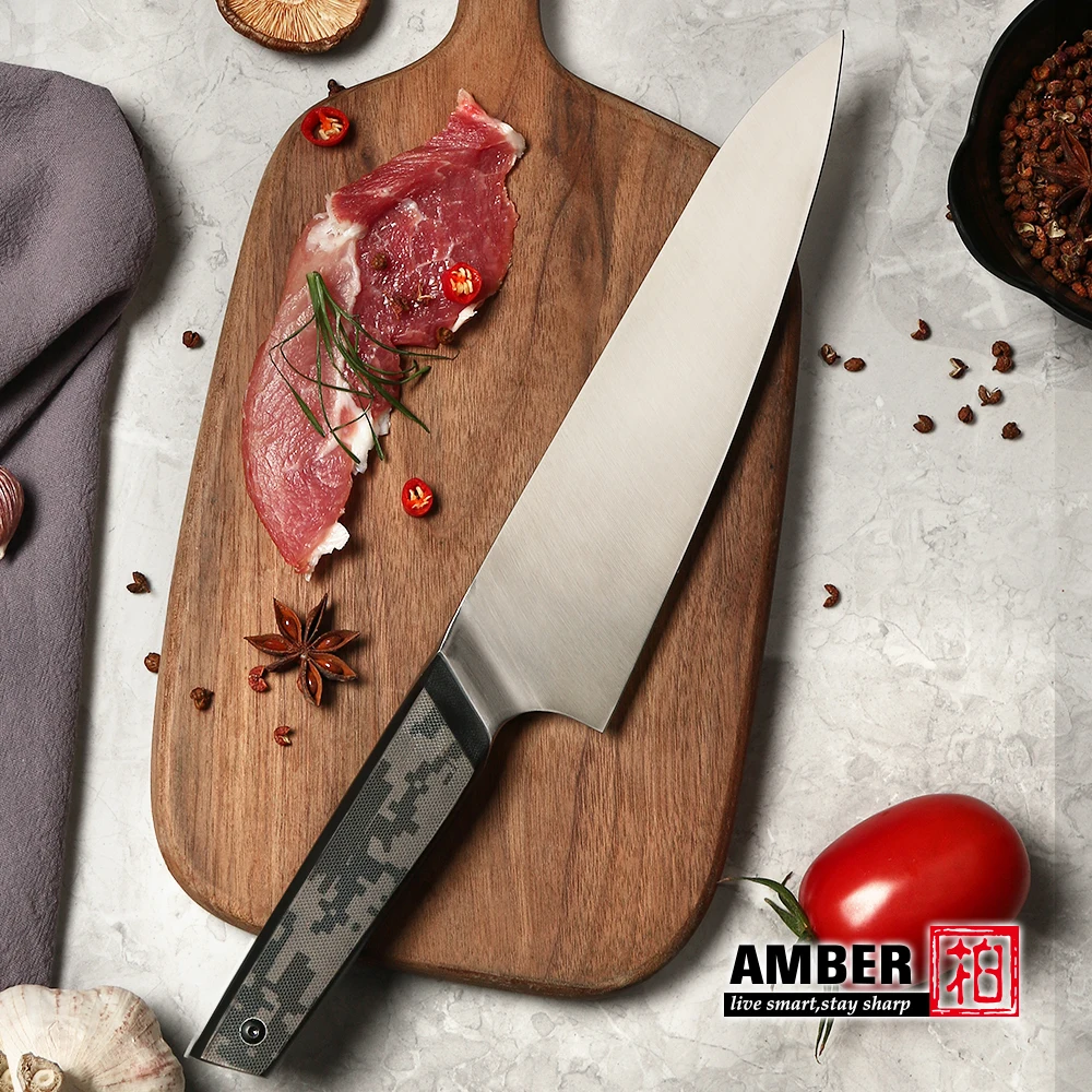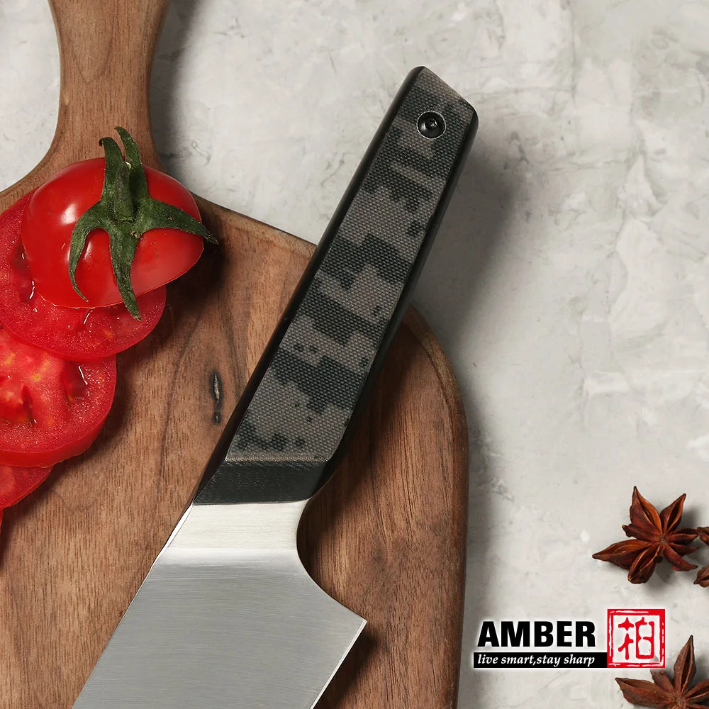 Be the first to review “Amber 2pcs Japanese Kitchen Knife Set- Sandvik 14C28N Steel Chef and Kiritsuke Knife with Camouflage G10 Handle” Cancel reply