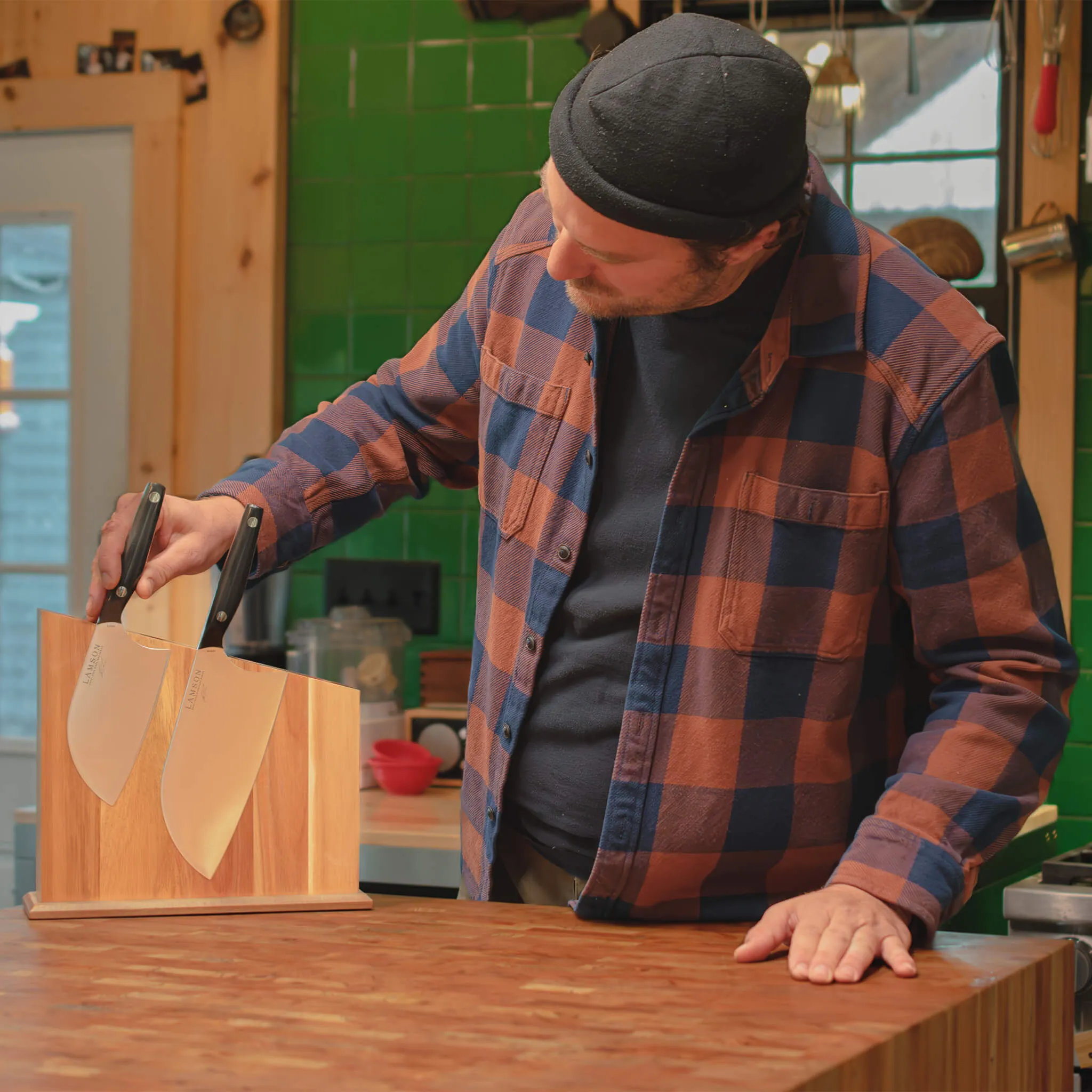 Meet your new kitchen commandos. The Brad Leone Signature Set puts legendary power in your hands—”The Bad Boy” for when you need to dominate any cutting task, and “Little Boy” for precision work that demands finesse. These aren’t just cleavers; they’re your ticket to cooking with the confidence of a pro, backed by Brad’s signature swagger and Lamson’s Massachusetts craftsmanship.