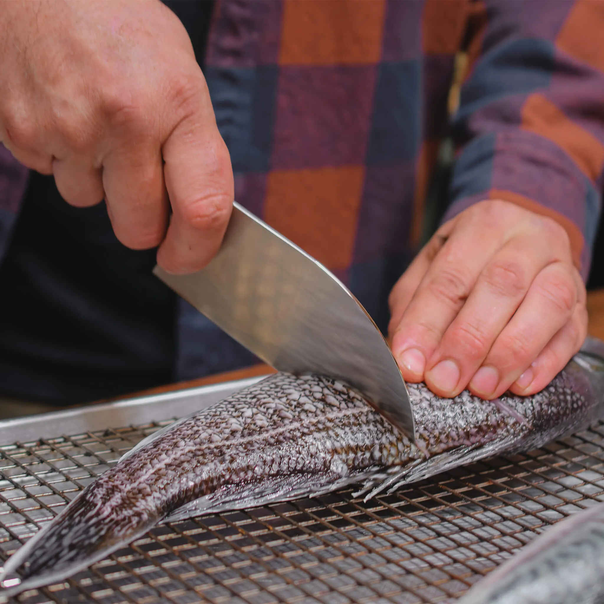 Constructed from superior USA Hi-Carbon Stainless Steel, our full-tang Brad Leone Signature blades are cut, ground, polished and sharpened in our Massachusetts facilities. Handles of Walnut or Midnight (Black G-10) are assembled to the blades with brass or stainless-steel rivets and then the knives are meticulously finished and sharpened.