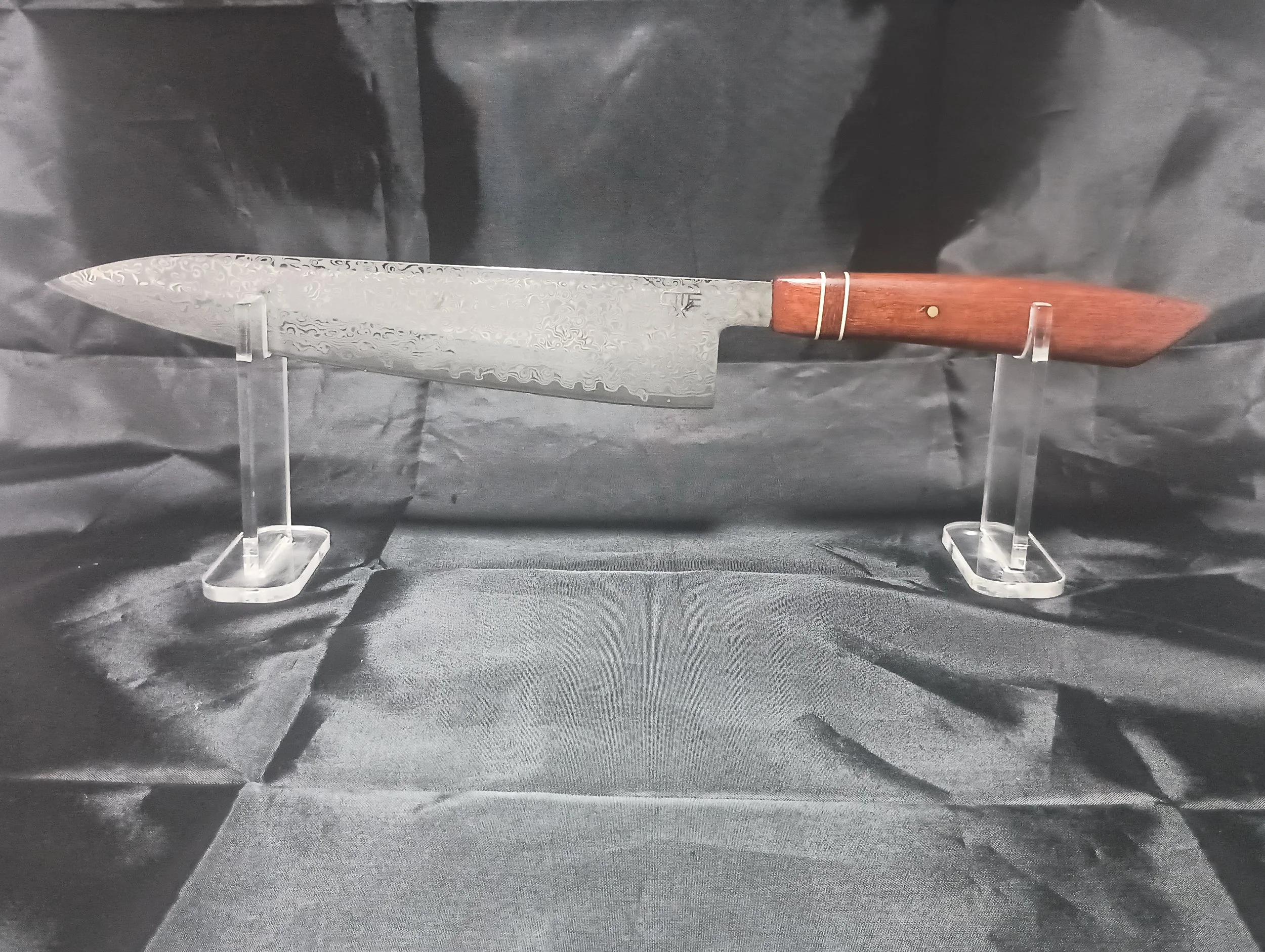Japanese Gyuto Knife Damascus Steel, VG10 Blade (OTE Paduak Handle with black spacers)