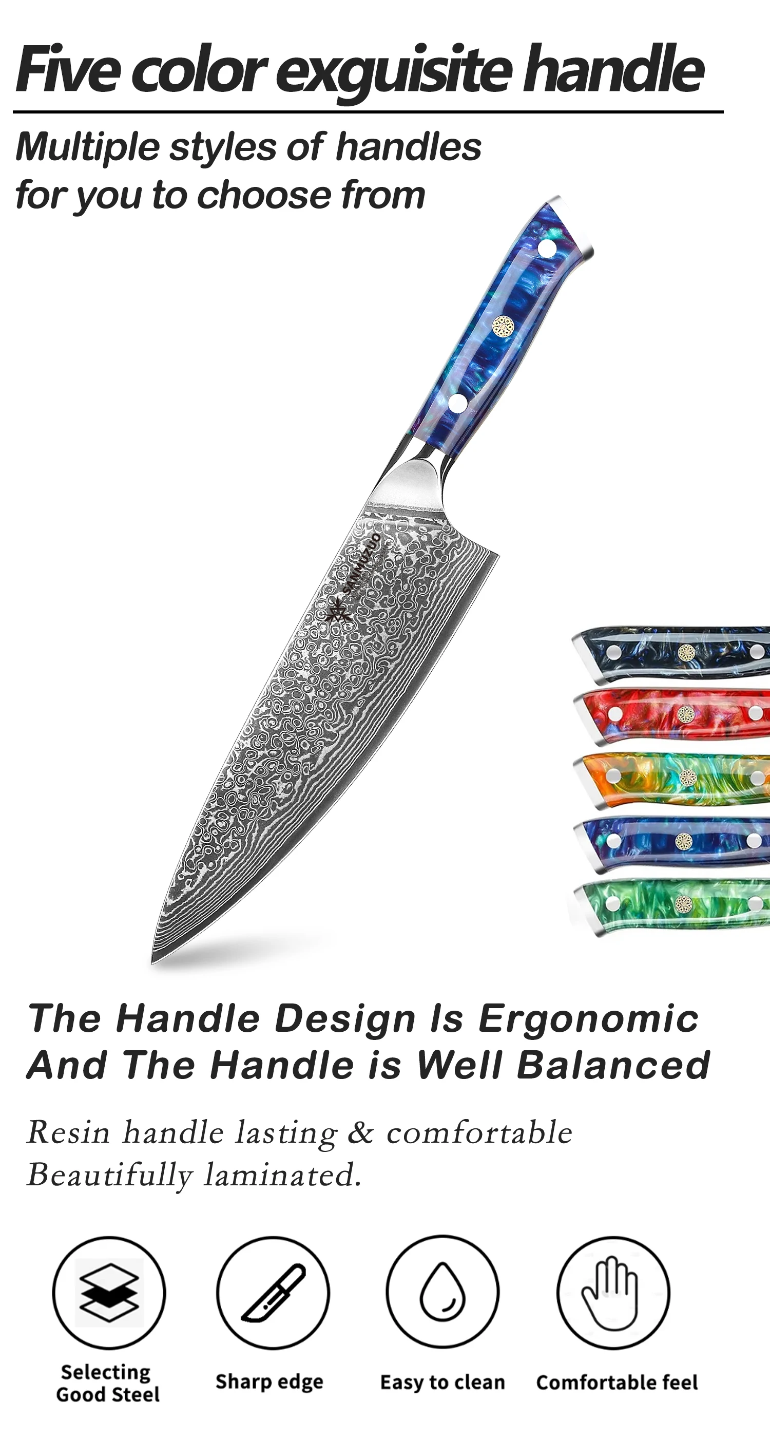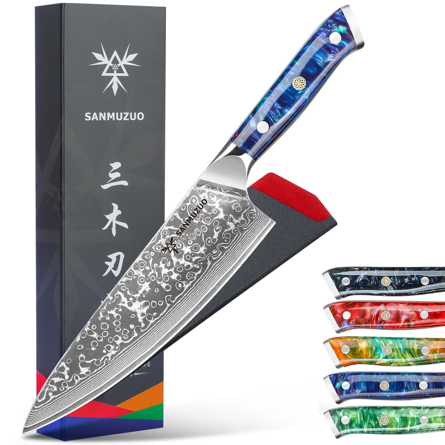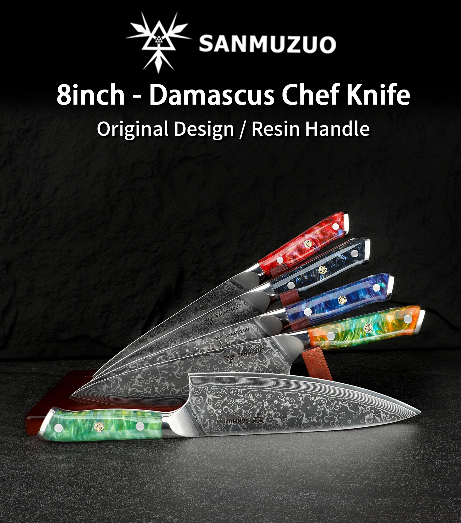 SANMUZUO Chef Knife – 8 inch Professional Kitchen Knife – Xuan Series – VG10 Damascus Steel Kitchen Chef Knife – Resin Handle