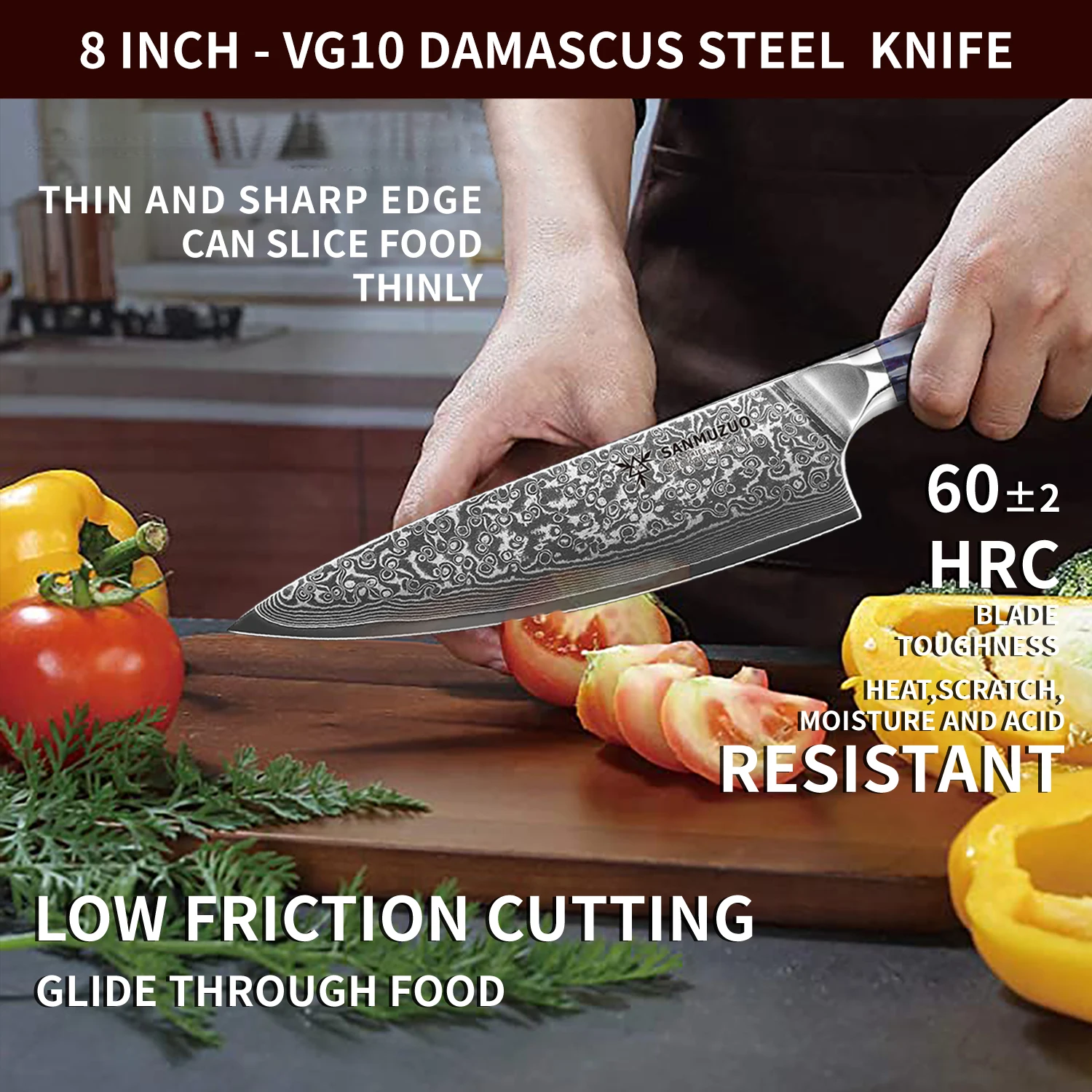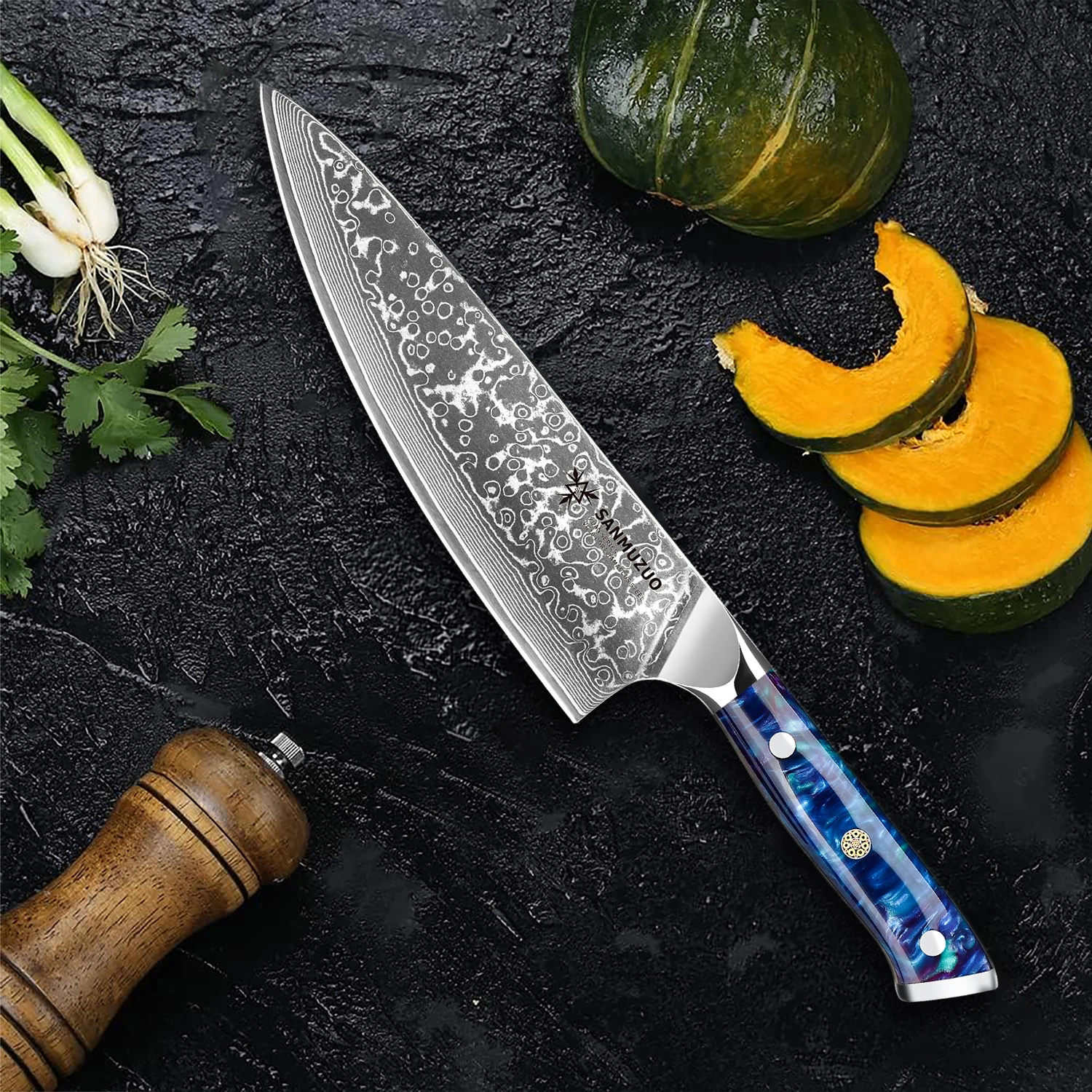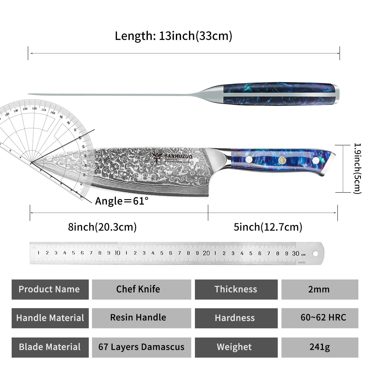 SANMUZUO Chef Knife – 8 inch Professional Kitchen Knife – Xuan Series – VG10 Damascus Steel Kitchen Chef Knife – Resin Handle