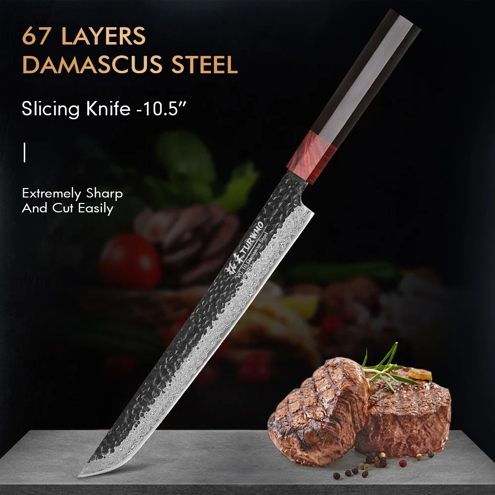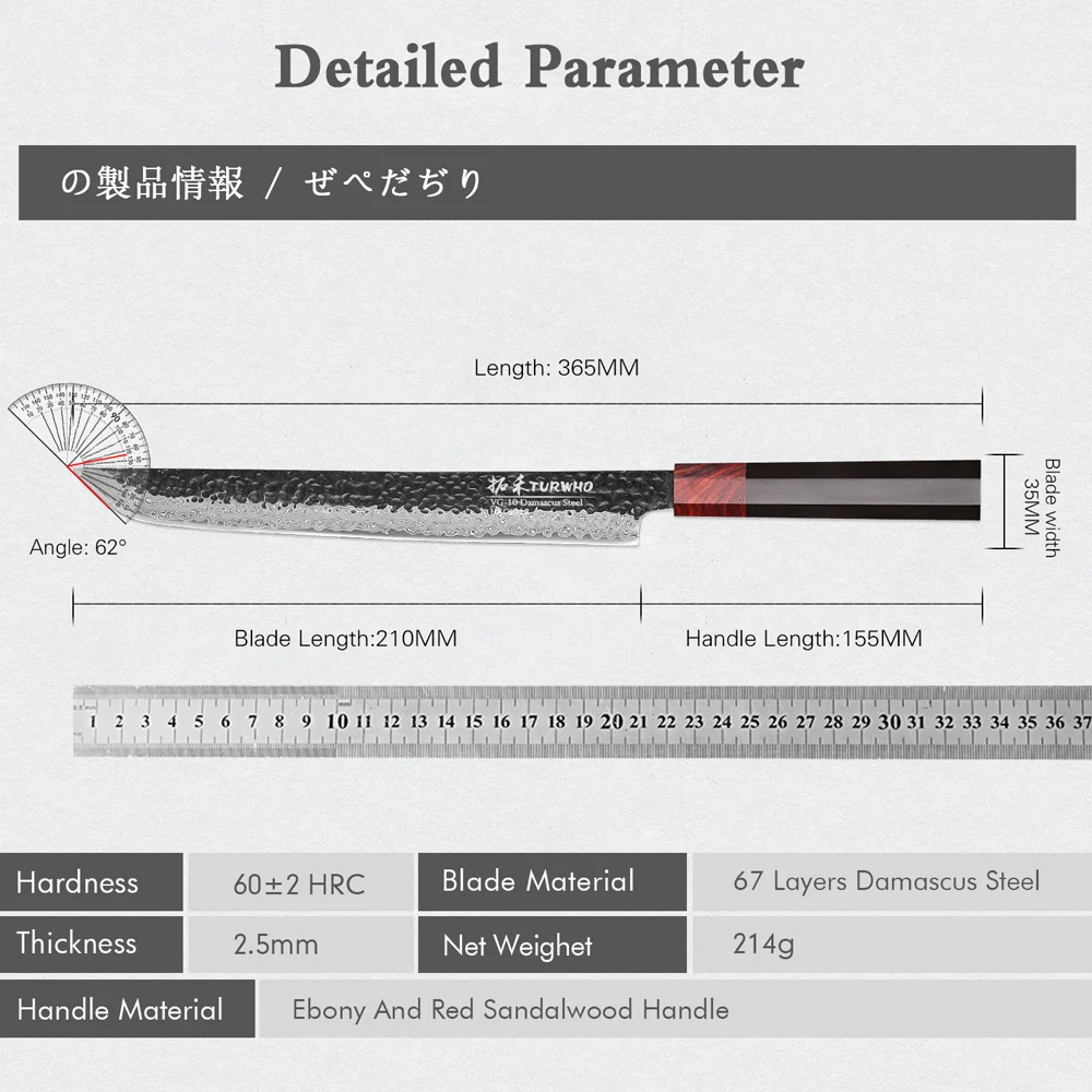 TURWHO Japan 10.5 Inch Slicing Knife Damascus VG10 Steel Core Chef’s Knives Professional Cut Sushi Salmon Fillet Kitchen Utensils
