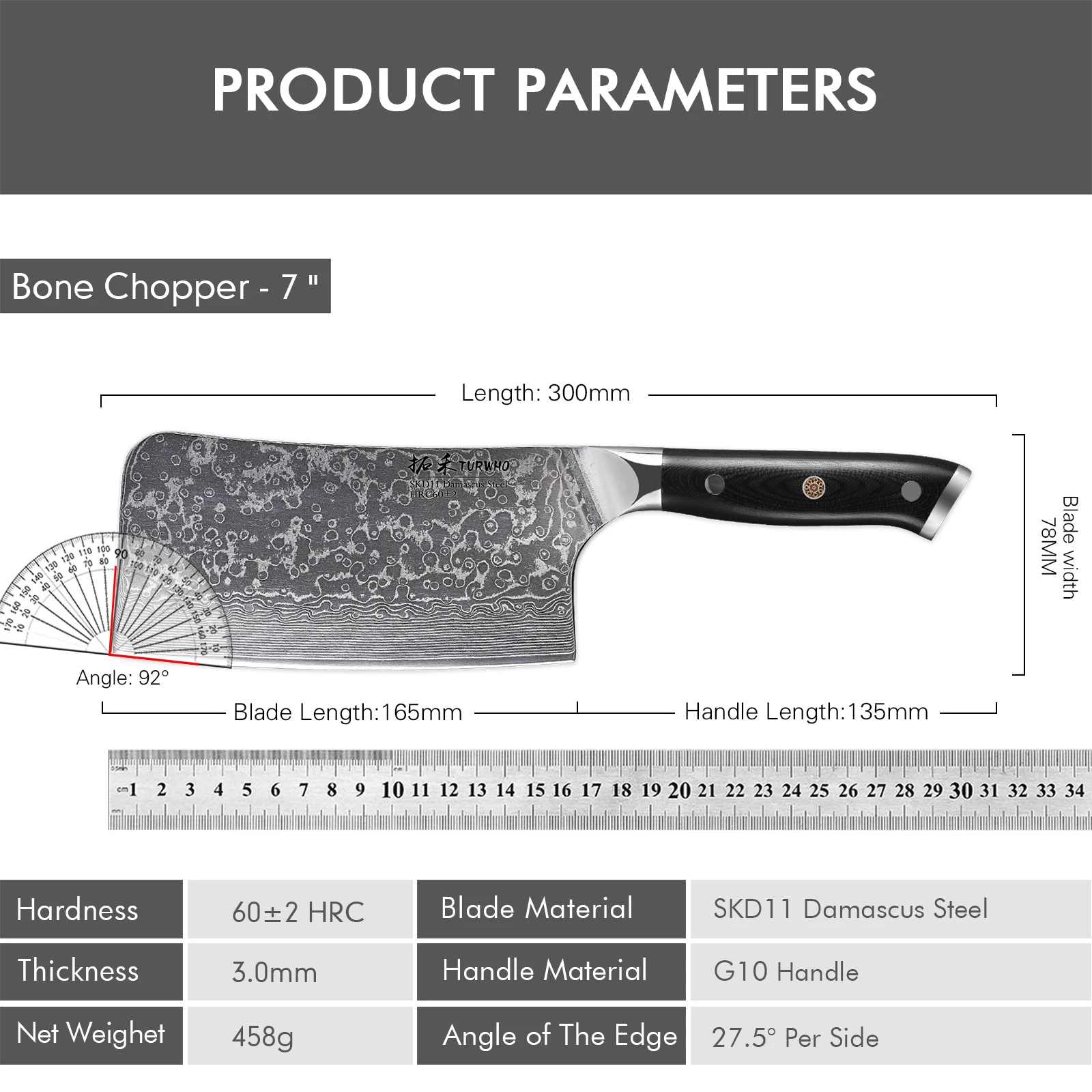 Be the first to review “TURWHO 7″ Meat Cleaver Knife 67 Layer SKD11 Damascus Steel G10 Handle” Cancel reply