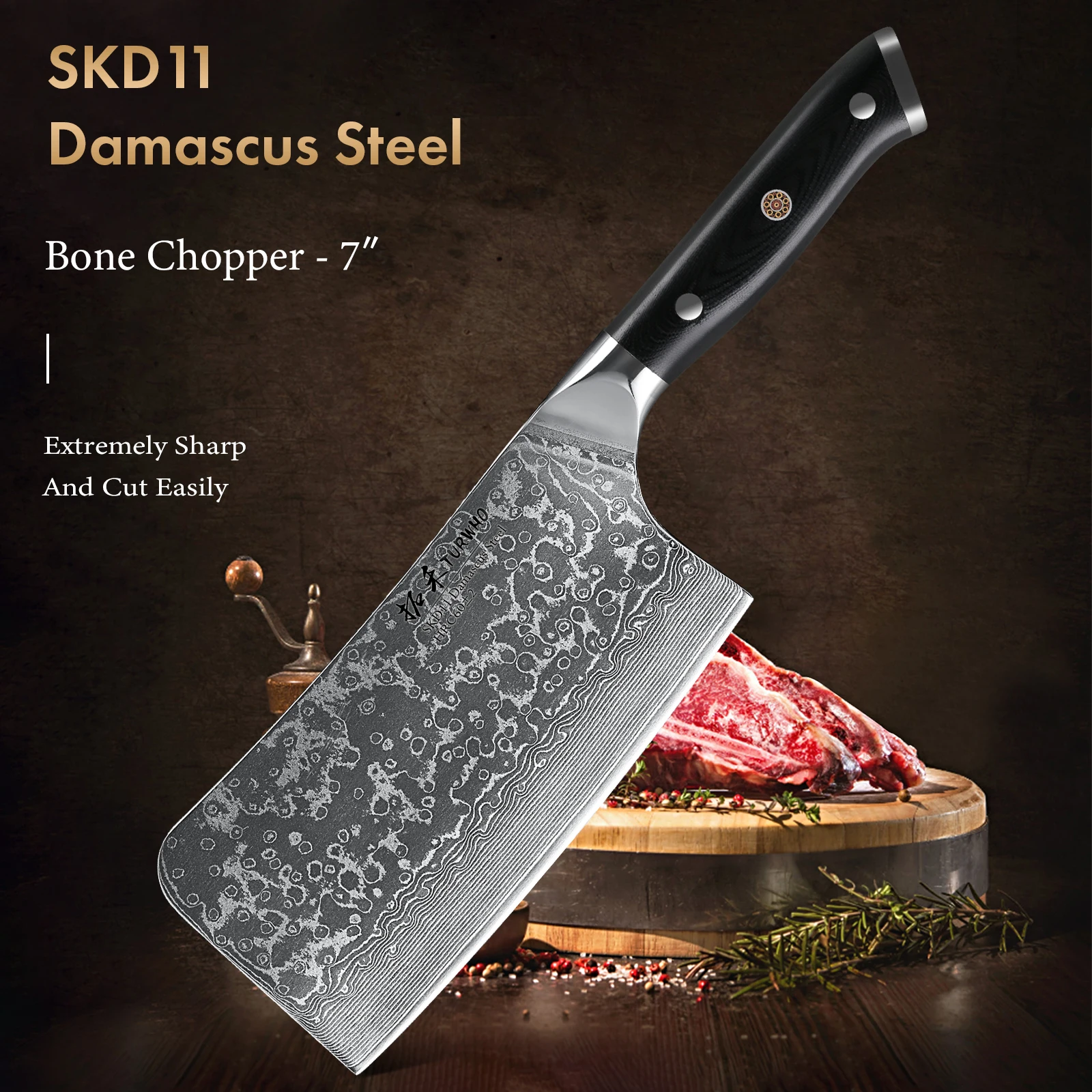 Home KITCHEN KNIVES MEAT CLEAVERS TURWHO 7″ Meat Cleaver Knife 67 Layer SKD11 Damascus Steel G10 Handle