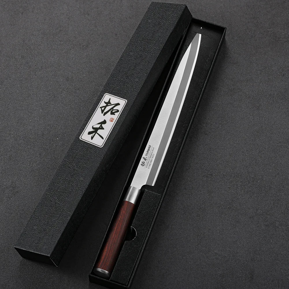 Home KITCHEN KNIVES SLICING KNIVES TURWHO 9.45″ X5Cr15MoV High Carbon Steel Sushi Knife with Rosewood Handle