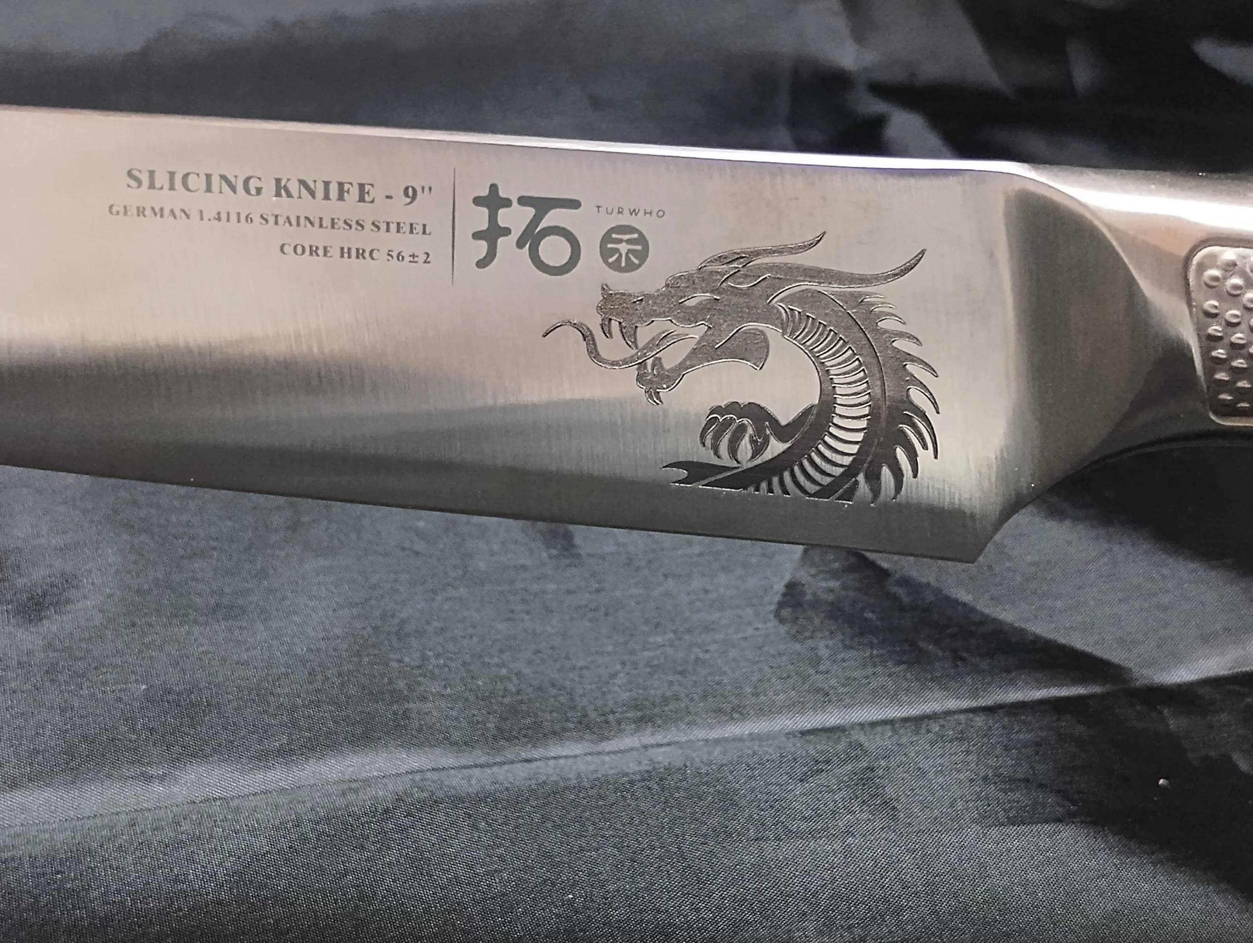 TURWHO 9" Slicing Knife German 1.4116 Steel (Etched Dragon)