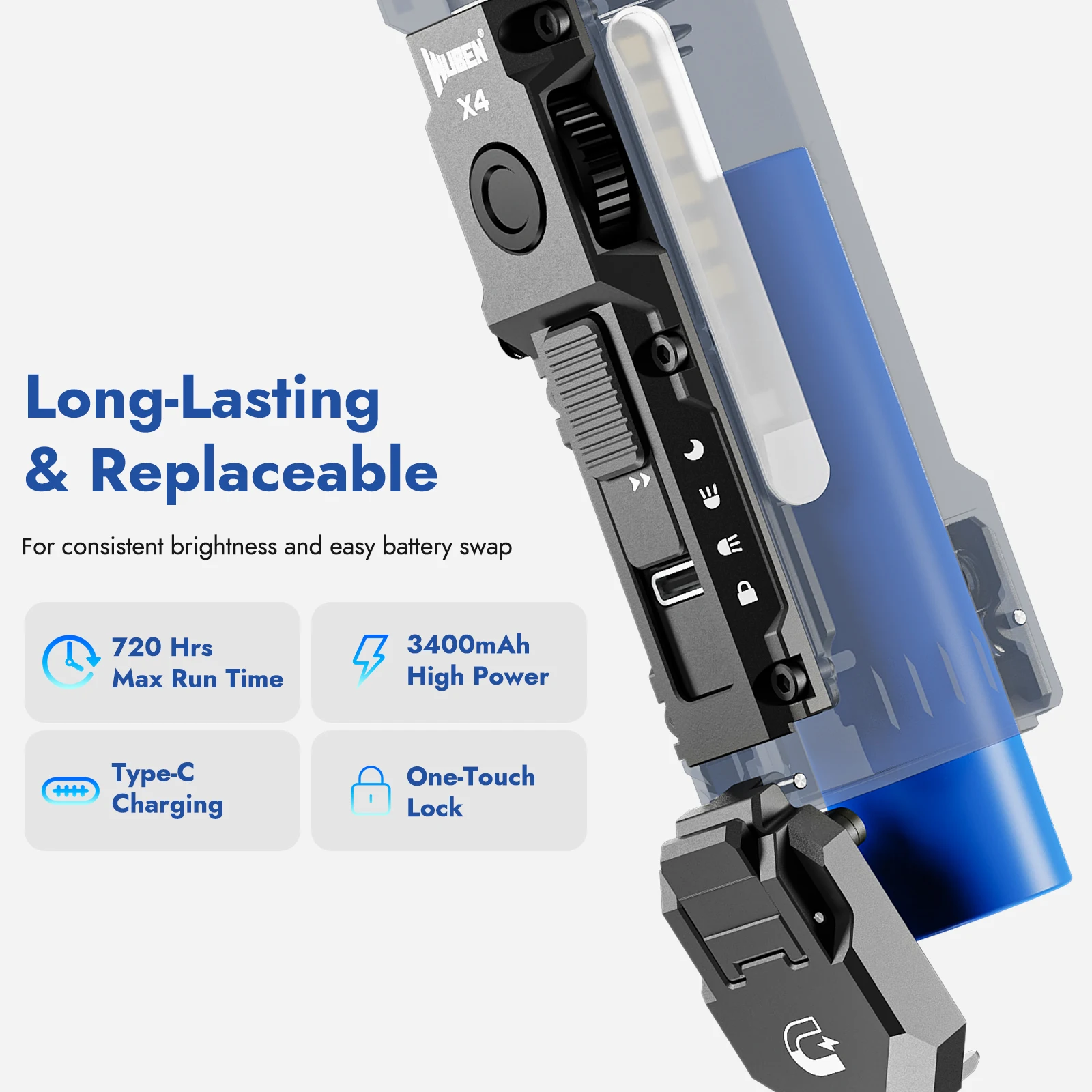 WUBEN X4 EDC Flat Mini Flashlight with RGB Light, 1500 Lumens, Magnetic, Tactical